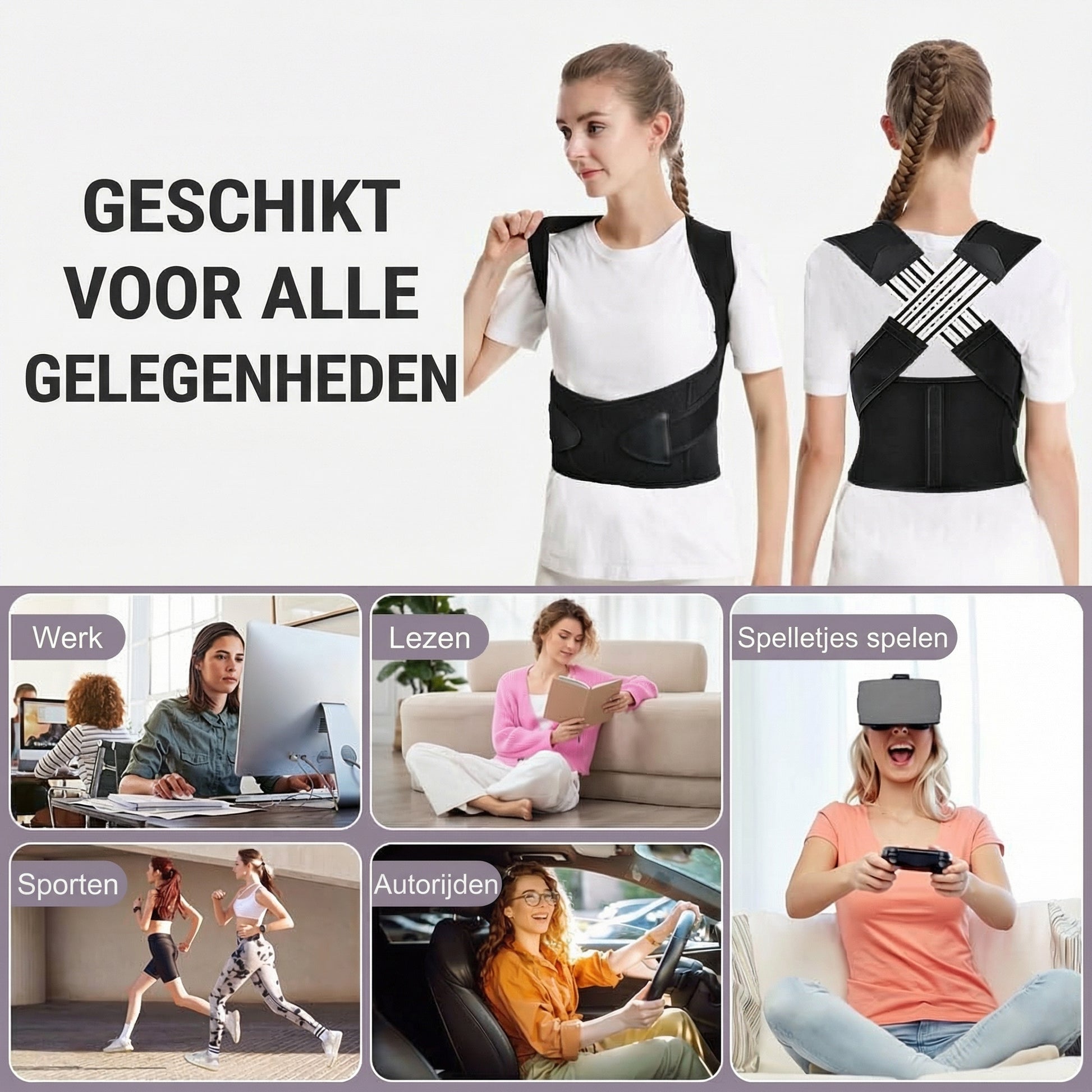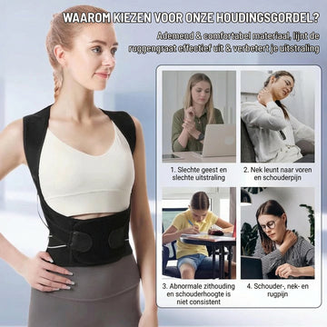Een goede houding is niet alleen mooier; het zorgt ervoor dat je je elke dag beter voelt. Deze band helpt je rechter te zitten, vrijer te bewegen en spanning in je nek en rug te verlichten. Het ondersteunt je houding zachtjes, waardoor je stabiel en op je gemak blijft. Het is lichtgewicht en discreet onder kleding, dus je kunt het dragen op het werk, in de sportschool of thuis met volledig comfort en vertrouwen.